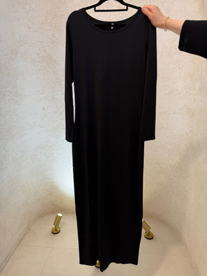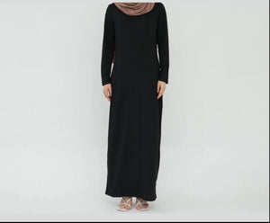 Discover the elegance and versatility of our black abaya slip dress. Made with high-quality materials and designed to fit comfortably, it is a one-size-fits-all option for your wardrobe. Whether worn as a dress or layered with other pieces, this dress is perfect for any occasion.