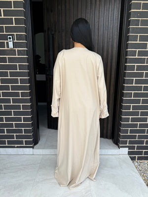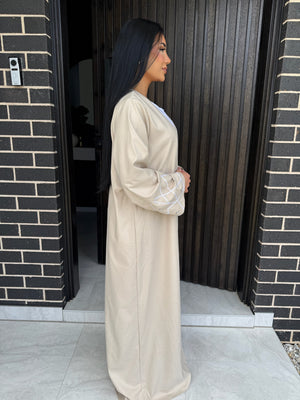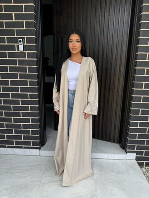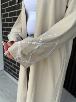 This Diamond sleeve open abaya features stunning diamond sleeve detailing and an open design for a chic and modern look. Made from high-quality materials, it provides both comfort and style. Elevate your wardrobe with this must-have piece.
