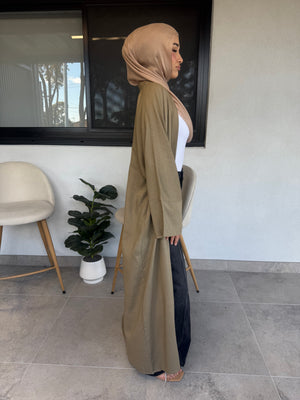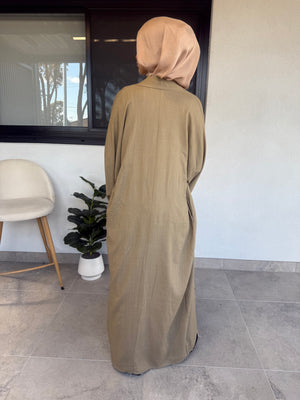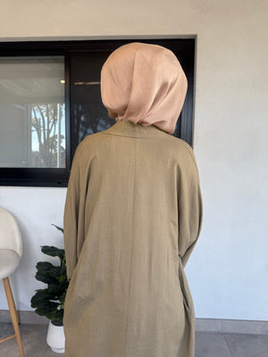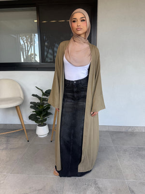 Introducing our Amara Linen open Abaya, featuring a sleek and modern design. Made from mixed linen fabric, it offers ultimate comfort and breathability. Comes with a belt for a customizable fit.