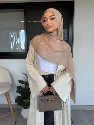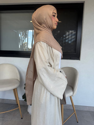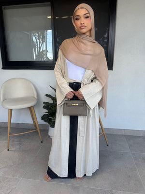 Introducing our Amara Linen open Abaya, featuring a sleek and modern design. Made from mixed linen fabric, it offers ultimate comfort and breathability. Comes with a belt for a customizable fit.