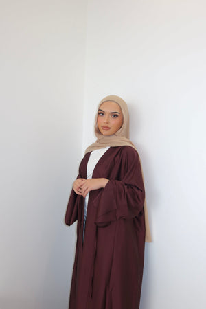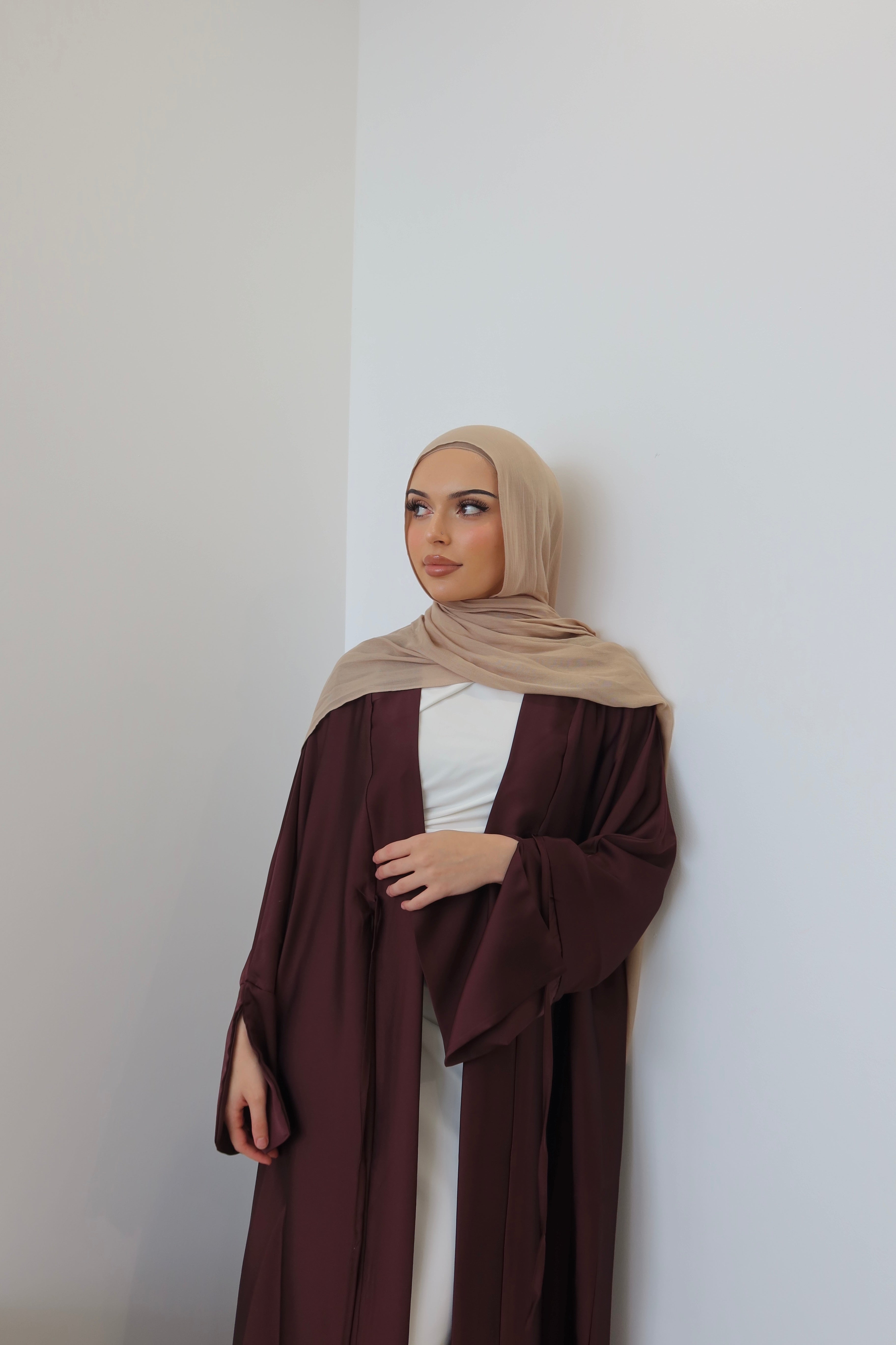 An elegant silk-feel abaya from our Ramadan Edit, designed with a soft satin feel finish and a fluid, lightweight drape. Featuring a relaxed silhouette and flowing sleeves for effortless modesty and comfort. One size fits all, perfect for iftar evenings and Eid occasions.