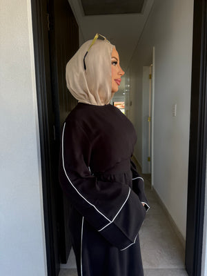 The Marwa dress is the perfect everyday choice for cooler days, in a versatile black color. Made with comfort in mind, this dress is a must-have for any wardrobe. Stay stylish and cozy with the Marwa dress.