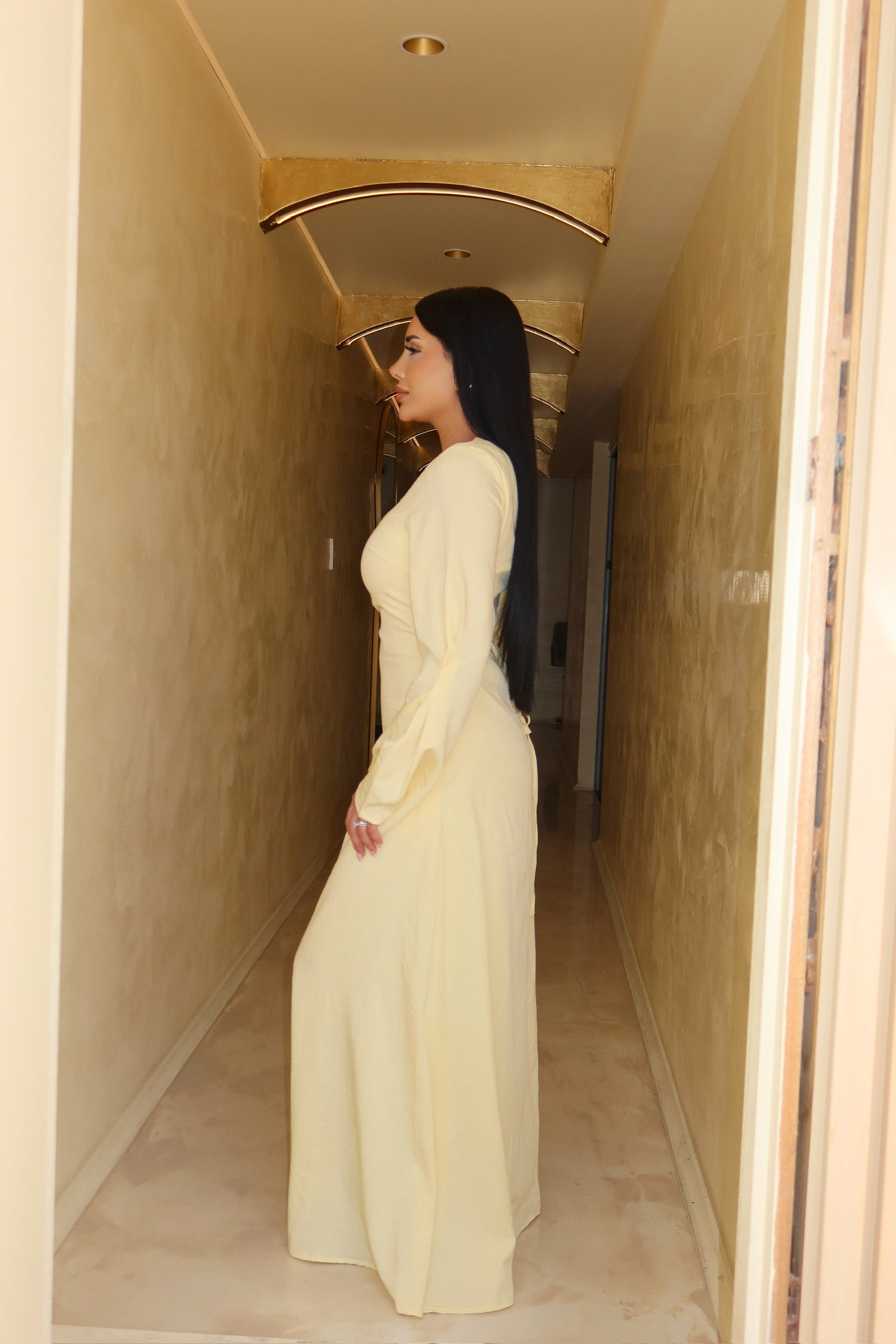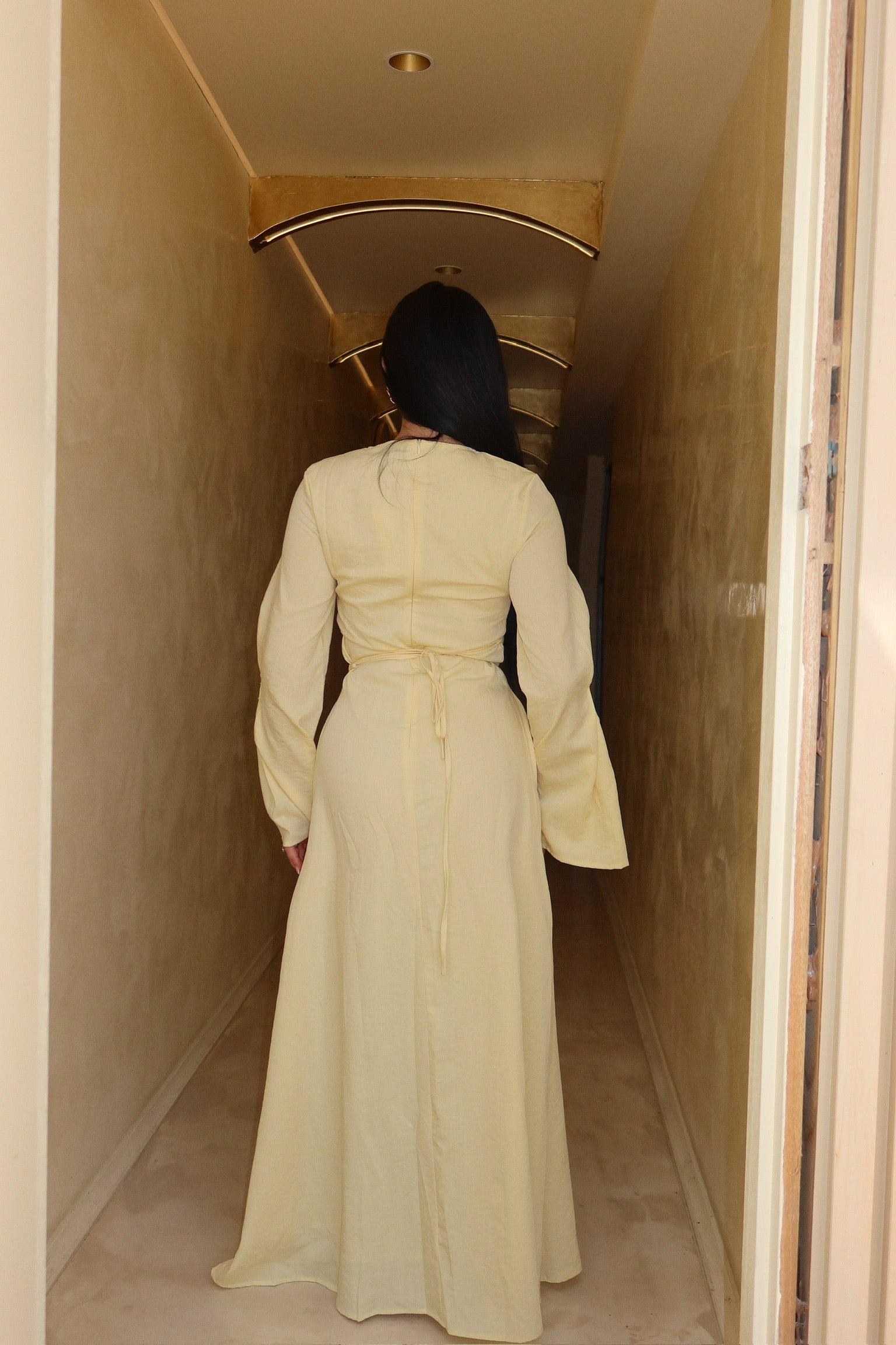 Upgrade your wardrobe with our Meadow Dress. This linen dress is both comfortable and stylish. The elegant flare sleeves add a touch of sophistication, while the tie at the back allows for a customizable fit. Perfect for any occasion, this dress is a must-have for any fashion-forward woman.