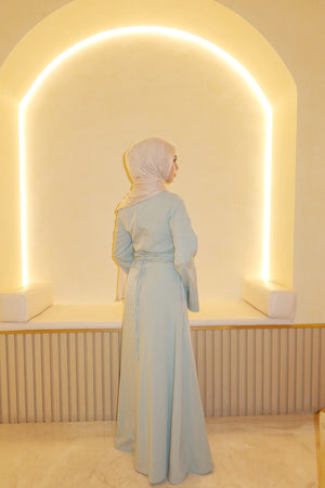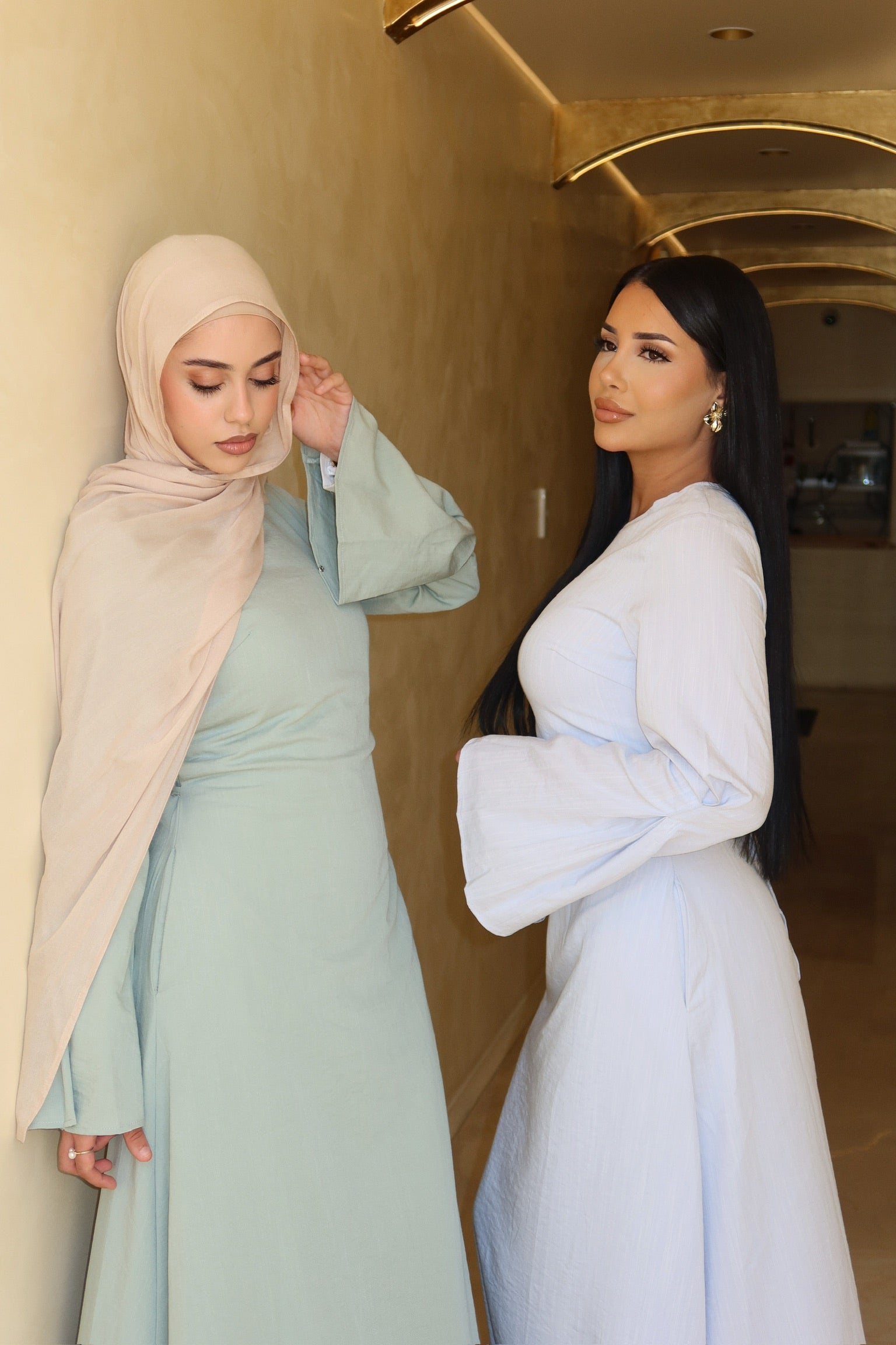 Upgrade your wardrobe with our Meadow Dress. This linen dress is both comfortable and stylish. The elegant flare sleeves add a touch of sophistication, while the tie at the back allows for a customizable fit. Perfect for any occasion, this dress is a must-have for any fashion-forward woman.