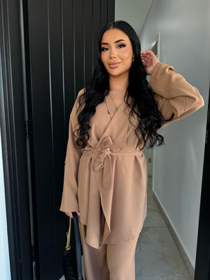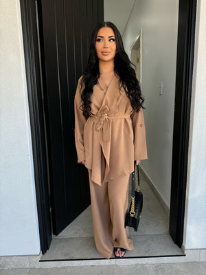 The kimono Ruby Set is expertly crafted for those who appreciate modest luxury. Delicately designed in a rich latte hue, this set exudes elegance and sophistication. With its high-quality detailing, it promises to elevate any ensemble. Indulge in timeless style with the Ruby Set.