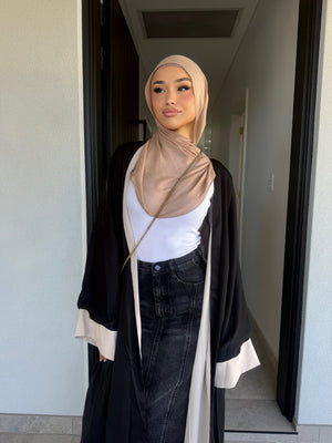 "Experience ultimate comfort and style with our Sofia open abaya. Made with high-quality fabric, this abaya is designed to provide both a luxurious feel and a modern look. With its open design, this abaya is perfect for any occasion. (No insert included)."