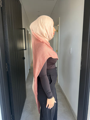 Elevate your wardrobe with the Sunrise ombré hijab. Made with high-quality viscose material, this hijab offers a soft and luxurious feel while adding a touch of color to any outfit. Perfect for any occasion, this hijab will keep you chic and comfortable all day.