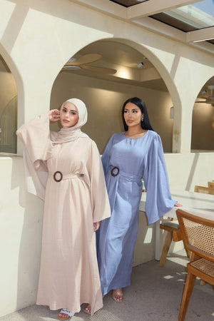 Introducing the Vela Dress, a flowy and modest summer dress perfect for any occasion. With a waist-cinching belt included, you can achieve a flattering silhouette. Stay cool and stylish this summer with the Vela Dress.
