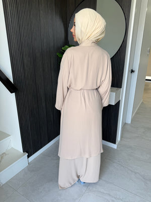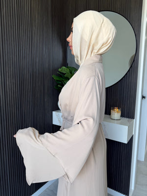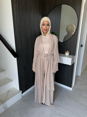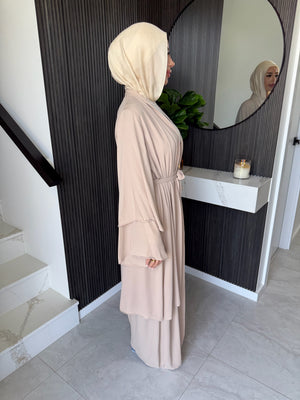 This Zara abaya features elegant frills on the sleeves and a versatile tie closure, allowing you to wear it open or tied for a customizable look. Made from high-quality materials, it exudes both style and comfort. Perfect for any occasion, this abaya is a must-have for any fashion-forward wardrobe.